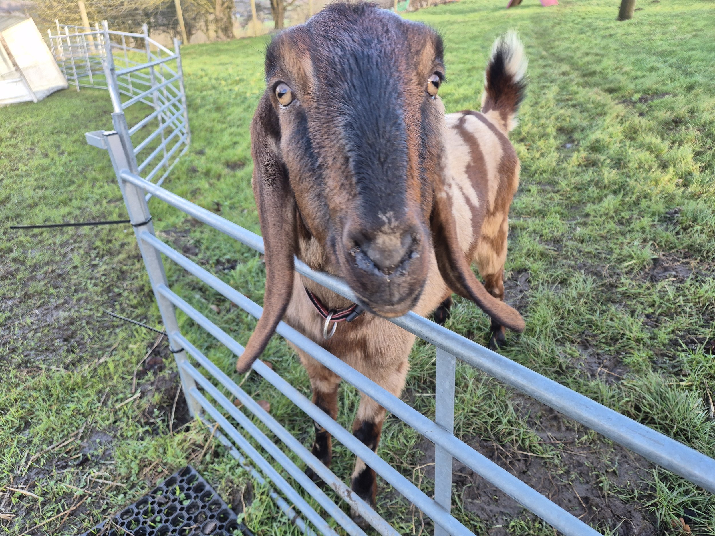 Tank is our only Anglonubian. He is the biggest headache of all the animals. With his athletic stature, this boy can clear any fence and he frequently does. He always comes home for breakfast and tea and our neighbours are very understanding!